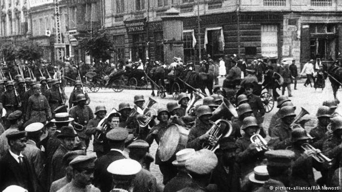 1918 року німецькі та австро-угорські війська вступили на територію України за умовами Берестейського миру.